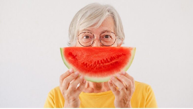 Obst liefert wichtige Vitamine und gesunde Kalorien für Ihre Ernährung. Ältere Menschen lehnen oft harte Äpfel oder unreife Birnen ab. Wählen Sie immer weiche und saftige Sorten. Eine gute Wahl ist die rote Melone. Sie enthält viel Wasser und natürlichen Zucker. Sie hilft Senioren, ein wichtiges Trinkregime einzuhalten. Sie ist sehr leicht zu kauen und sicher zu schlucken. Die Frucht gibt dem Körper schnelle Energie ohne schädliche Süßigkeiten.